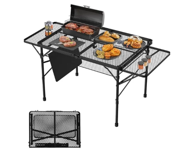 Legeringcampingtafel Outdoor vouwbureau, vouwtafel met 2 vleugelpanelen, 3x2 ft campingtafel met gaas bureaublad, hoogte verstelbare vouwgrilltafel met gaaszak, draagbare buitentafel voor picknick, kamperen, BBQ, strand