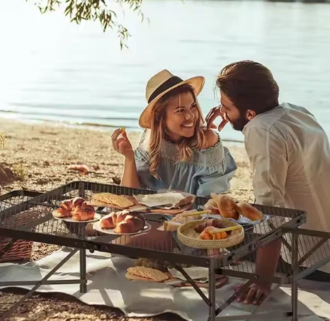 Legeringcampingtafel Outdoor vouwbureau. Met een afneembare maaslaag en zijzak, bevat de vouwtafel van de wildfinder al uw essentiële activiteiten voor buitenactiviteit. Ingebouwde bekerhouders zorgen voor geen morsen en bieden een stressvrije buitenervaring. Zhejiang Jiayu Outdoor Products Co., Ltd., de zeshoekige structuur van de vouwtafelpoten, beveiligd met schroefdraadverbindingen, zorgt voor ongeëvenaarde stabiliteit en kracht, waardoor het ideaal is, ideaal voor verschillende buitenactiviteiten.