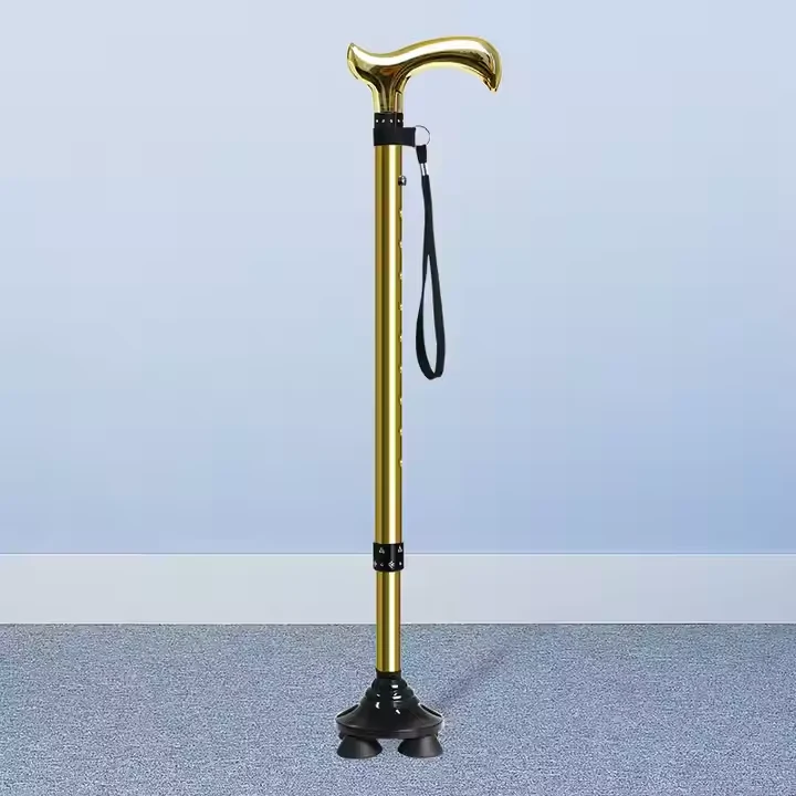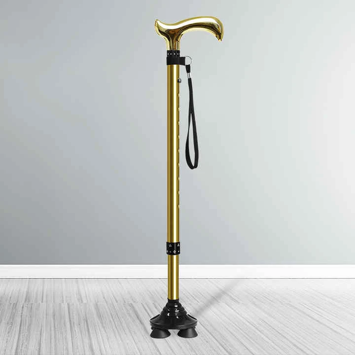 Alloy Telescopic Walking Pool, Quad Base maakt het een zelfstandige riet dat valt of op de vloer daalt ... Zhejiang Jiayu Outdoor Products Co., Ltd., connector met siliconenweerstandsring die het stok strakker maakt, waardoor het geen toevallige instortingen verhindert. Eenmaal vastgedraaid, presteert het riet als een solide stijve loopstok.