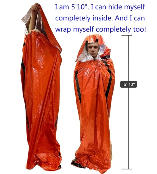 Slaapzak voor overleving van noodsituaties kan uw overlevingskansen vergroten bij alle weersomstandigheden, alle seizoenen en alle omstandigheden. Het is gemaakt van duurzaam isolerend mylar materiaal ontworpen door NASA voor ruimte -exploratie. Het behoudt / reflecteert 90% van de lichaamswarmte. Het is herbruikbaar, waterdicht en winddicht.