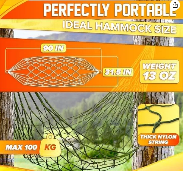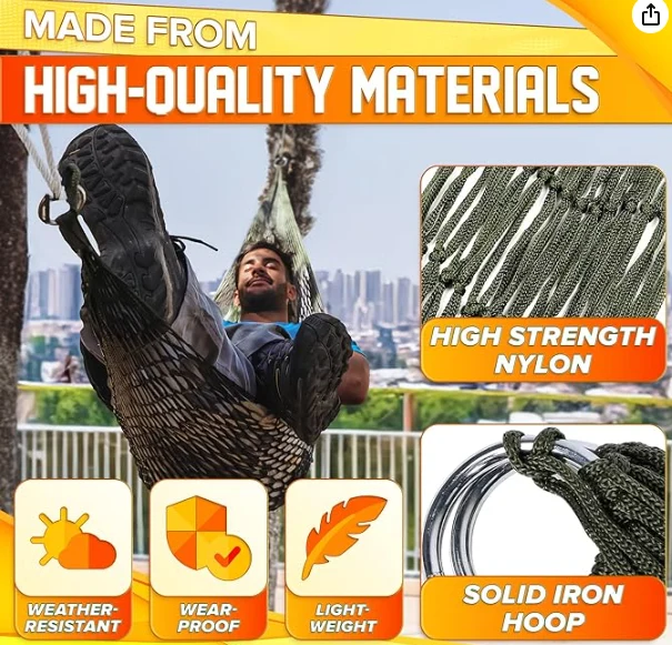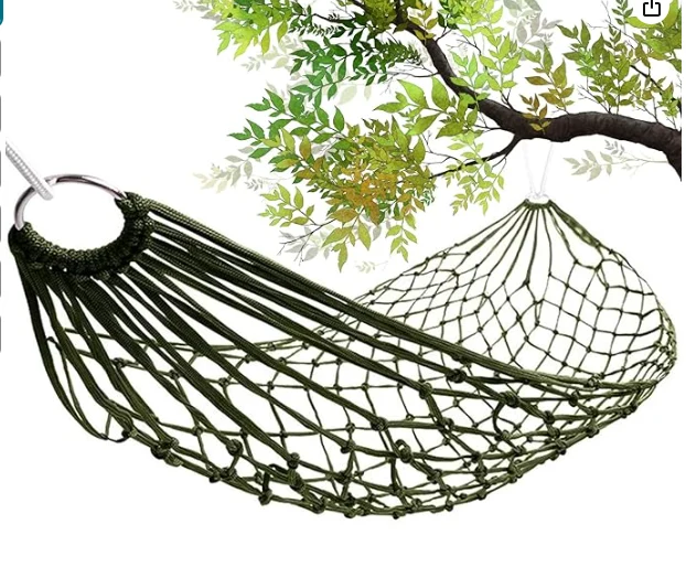 Wandelen hangende hangmat, deze nylon snaar hangmat heeft een hoge belastingdragende capaciteit. Deze nylon touwhangmat zijn perfect voor binnen en buiten vanwege een hoge duurzaamheid en bestand tegen slijtage