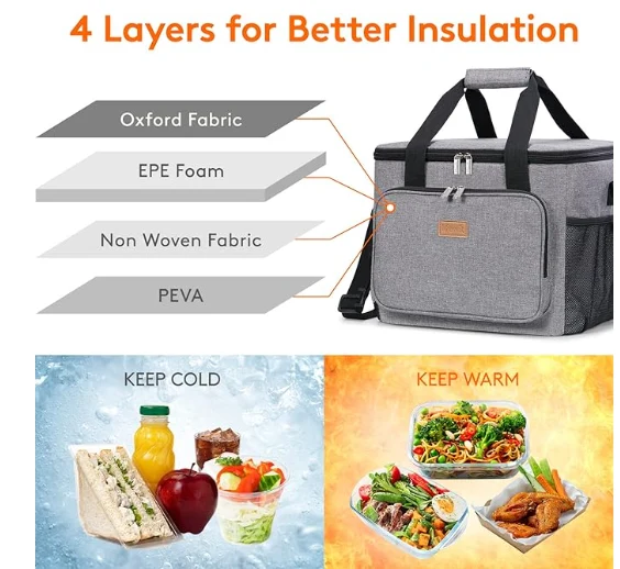 Grote capaciteit: afmetingen - 13,8 "(35 cm) × 11" (28 cm) × 11 "(28 cm). De maximale capaciteit van lunchbox voor volwassenen is 24l, en is ruim genoeg om 40 blikken cokes (330 ml) of uw lunch zoals sandwiches, sandwiches, salade, dranken en fruit en zo te opslaan.