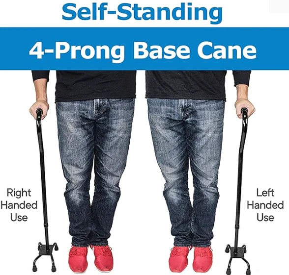 Old Man Medical Cane, elke tanden is bedekt met een anti -slip rubberen rietpunt voor extra stabiliteit en veiligheid. De Quad Base maakt het een zelfstandige riet dat valt of op de vloer valt. Perfect voor na de operatie wanneer u niet kunt buigen of bereiken.
