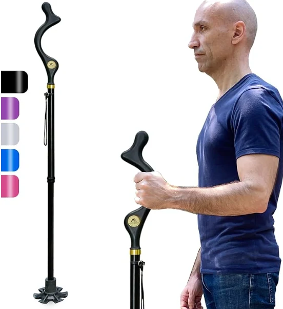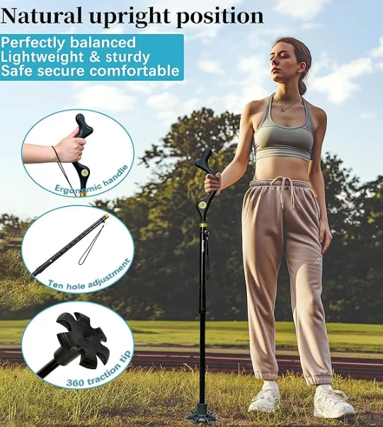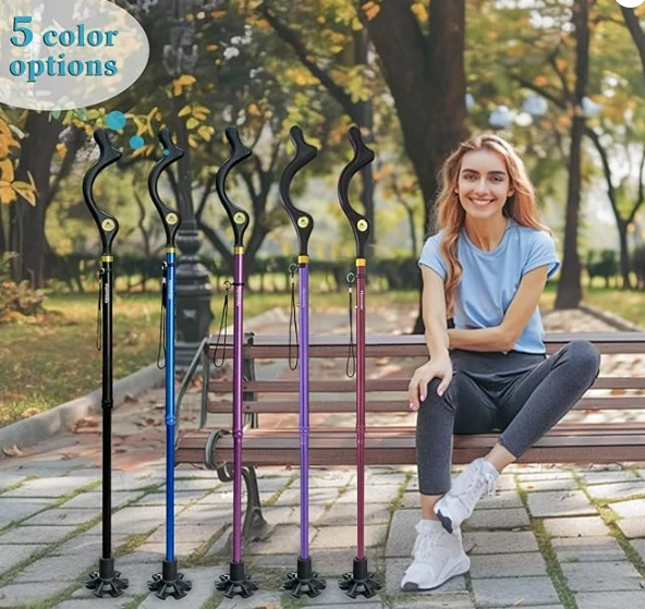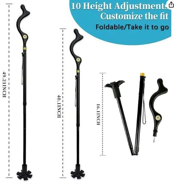 Buiten klimuitrusting wandelpaal, wandelstokkoker voor mannen en vrouwen senioren voor balans, zelfstandige vouwstok, hoogte verstelbare anti-slip lichtgewicht legering legeringsstick inklapbaar voor reismobiliteitshulp