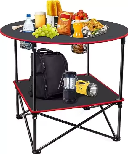 Buiten Dining Beach Table. Vouwbare vierkante canvas tafel kan niet alleen binnenshuis worden gebruikt, maar ook voor kamperen, vissen, wandelen, strand, picknick, bbq, kookt.zhejiang Jiayu Outdoor Products Co., Ltd., midden voor een kom popcorn, chips, dip of andere snacks , sleutels, enz., Die snacking tijdens buitenactiviteiten gemakkelijker en schoner maakt. Op het hoogste niveau van de tafel is er nog een laag voor extra ruimte om voedsel vast te houden.