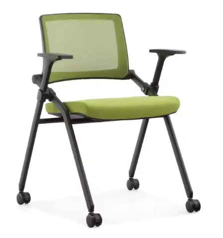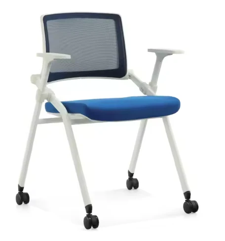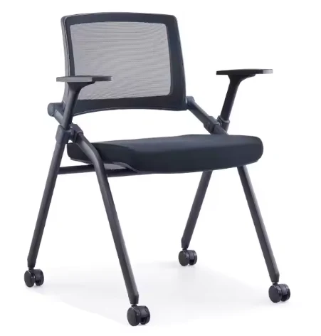 Gevoerde metalen vouwstoel, opvouwbare bureaustoel met PU-wielen en glijdende armleuning-orergonomische mesh stuiteren terug, stapelbare vergaderruimte, kantoorgast en receptie en vergaderstoel
