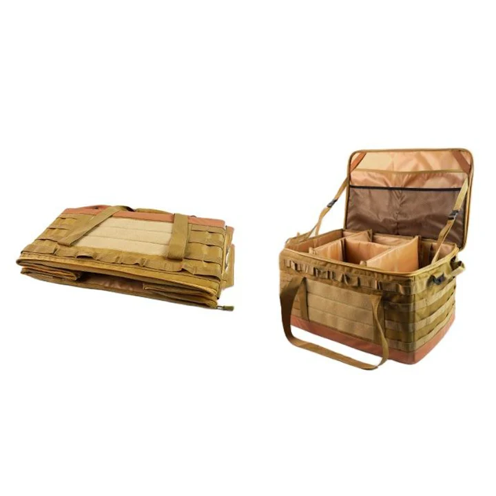 Picknick servies Tote Tas. Camp Keukengerei Organizer neemt Double ritssluiting aan, dat handig is om te gebruiken, gemakkelijk te openen en te sluiten, en de inhoud goed kan opslaan. Zhejiang Jiayu Outdoor Products Co., Ltd. Camping Pook Gerei is gemaakt van stevige Oxford -doek, die waterdicht en sturd is. De Pearl Cotton van de binnenste laag heeft een bepaalde schokabsorptie en koude isolatiefunctie en kan ook worden gebruikt om ijsbier en ijsdranken te doen