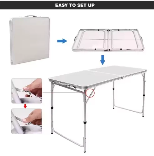 Draagbare vouwaluminiumtafel, heeft multifunctioneel gebruik, zowel binnen als buiten, inclusief picknicktafel, strandtafel en kampeerkeukentafel, die worden gebruikt voor kamperen, strand, toerisme, sportevenementen, RV buiten en vissen.