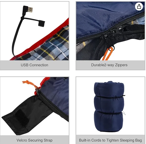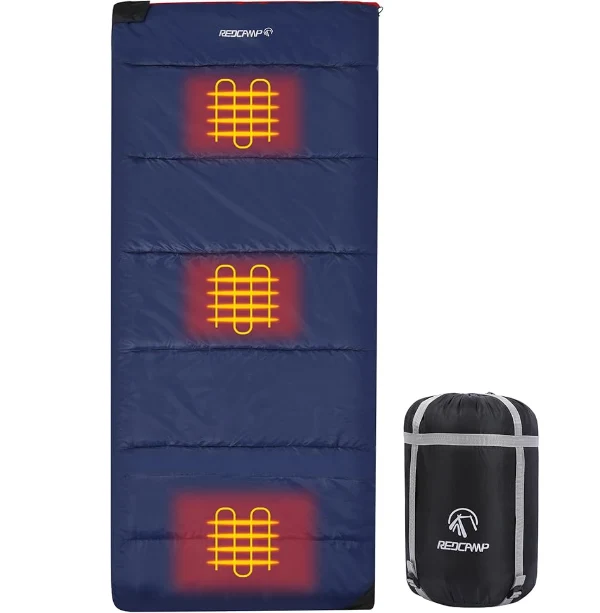 Draagbare verwarmde waterdichte slaapzak, door op een knop te drukken, dit maakt het gemakkelijk voor u om de temperatuur aan te passen volgens uw behoeften, die de hele nacht warmte en comfort brengt.