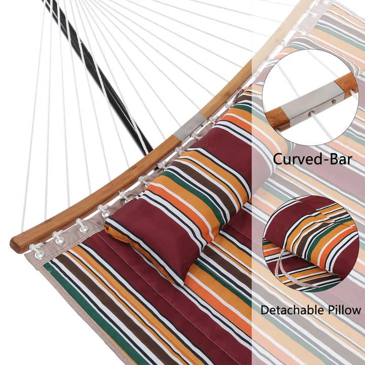 Portable Nylon Camping Hammock.Whether it's friends or family, this hammock is a versatile, functional, and unique way to give them a new experience in comfort and quality.Zhejiang Jiayu Outdoor Products Co., Ltd. includes a stand, easily folds into a compact carrying bag so you can take your comfort on the go!very suitable for resting and relaxing in bedrooms, gardens, terraces, courtyards, balconies, en buitenshuis.