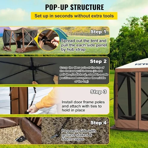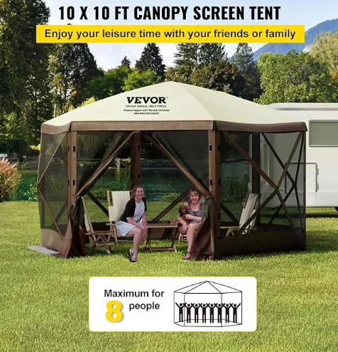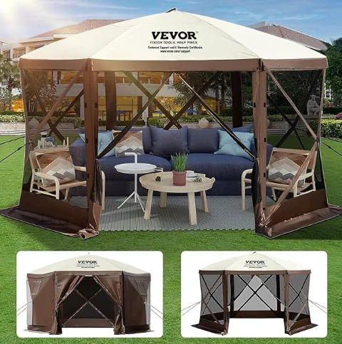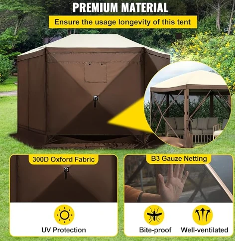 Regendichte pergola camping luifel tent, camping gazebo -tent is gemaakt van 300d Oxford -stof en B3 gaas -net. Het is IPX3 waterdicht, bijtbestendig en UV-proof. De 12 'x 12' tuinhuiskuif biedt een grote ruimte voor het gebruik van buitenopvang.