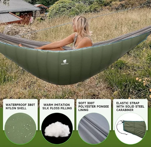 Reiscamping hangmat onder quilt voor kamperen - 20d 380T waterdichte nylon plaidstofschaal met zachte 300 t polyester pongee voering; Imitatie zijden floss vulling, huid - vriendelijk, comfortabel